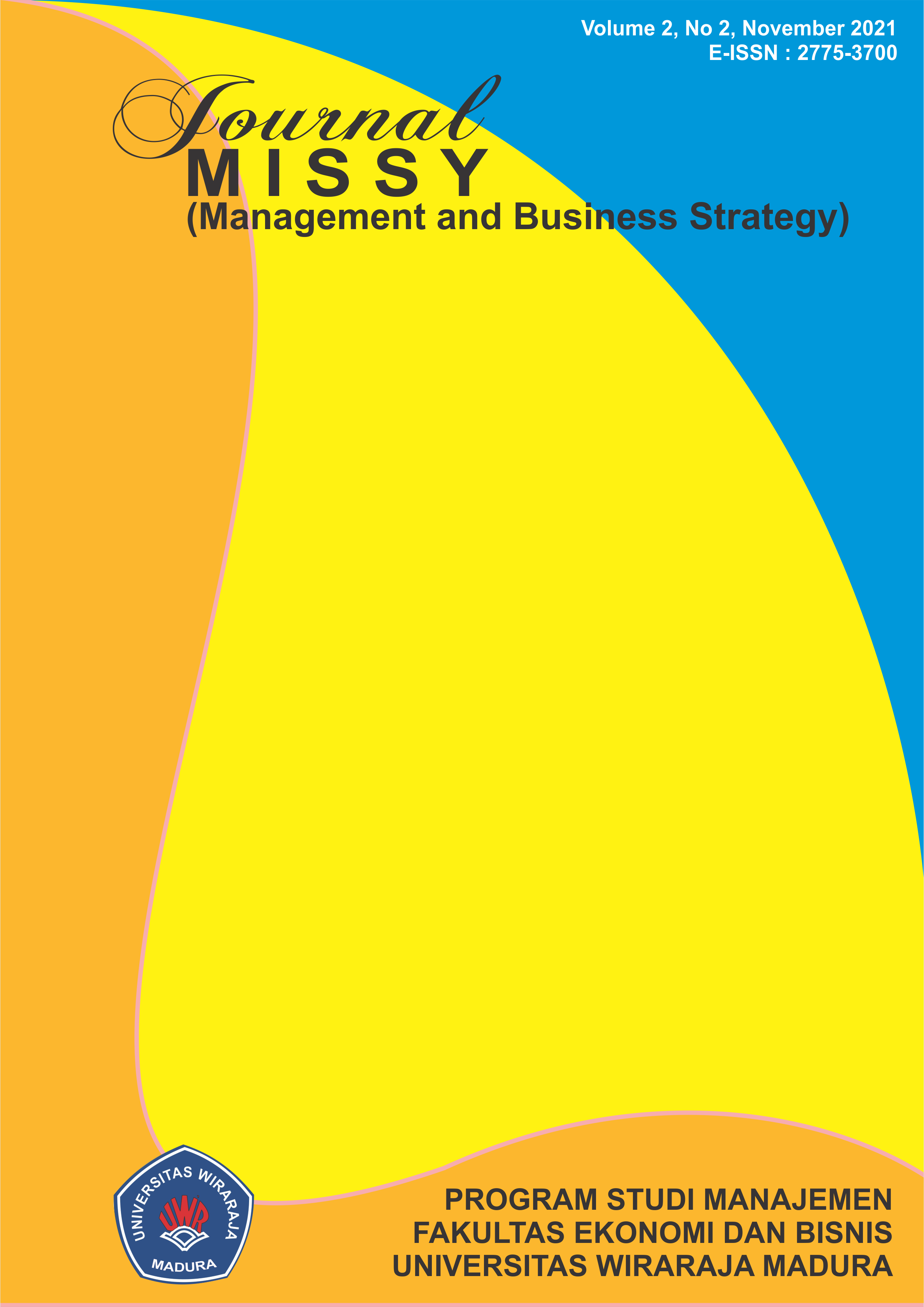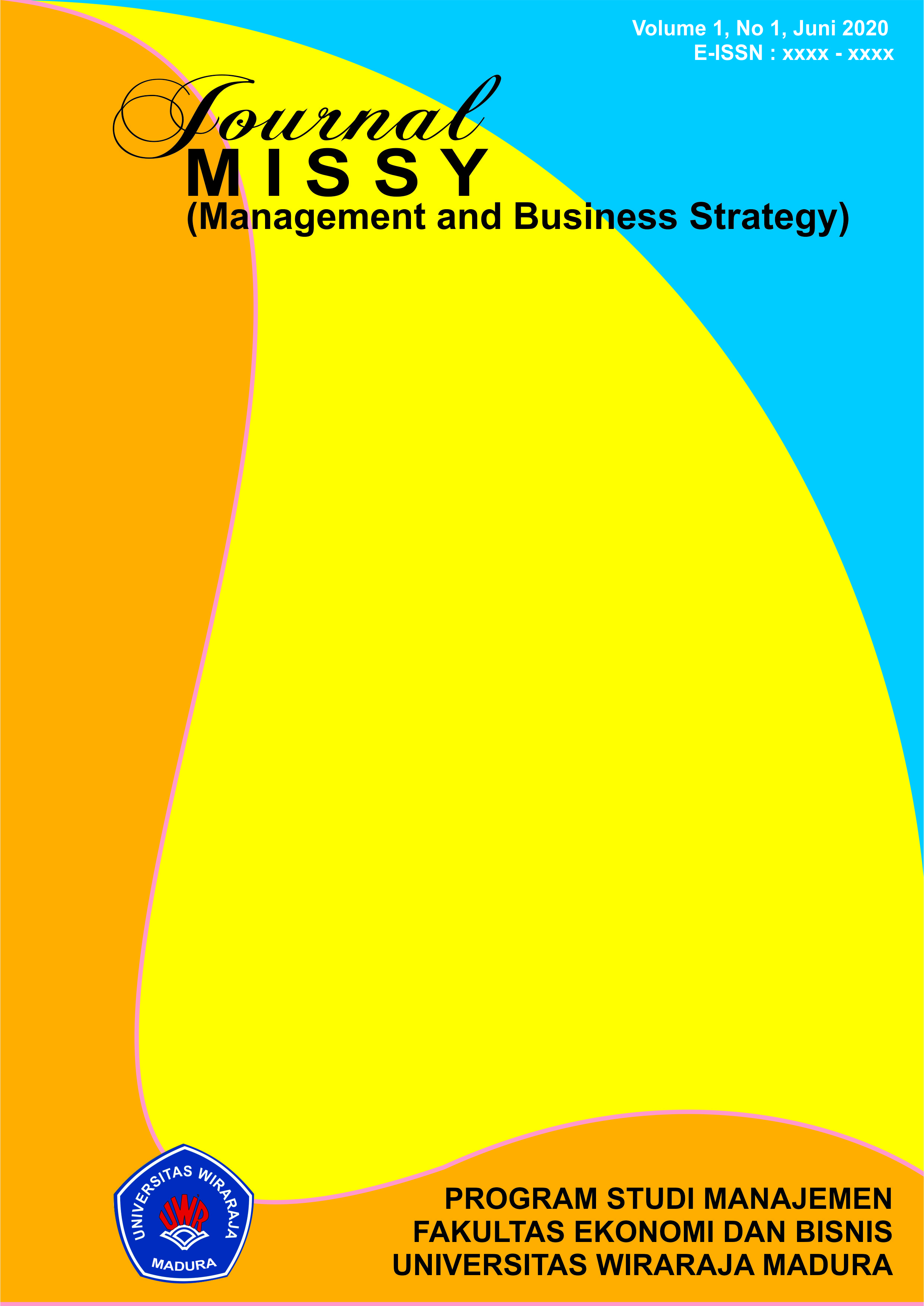 JOURNAL MISSY (Management and Business Strategy) diterbitkan secara berkala oleh Program Studi Manajemen Fakultas Ekonomi dan Bisnis Universitas Wiraraja Madura sebagai media dalam mempublikasin hasil penelitian. Tim Redaksi menerima naskah tulisan ilmiah yang belum pernah diterbitkan dalam jurnal ilmiah lain baik dalam maupun luar negeri. Naskah yang dimuat merupakan hasil karya asli penulis dan pihak redaksi tidak bertanggung jawab atas isi dari naskah hasil penulis. Tim Redaksi dapat menerima,menolak, atau mengadakan koreksi tanpa merubah isi dari tulisan.